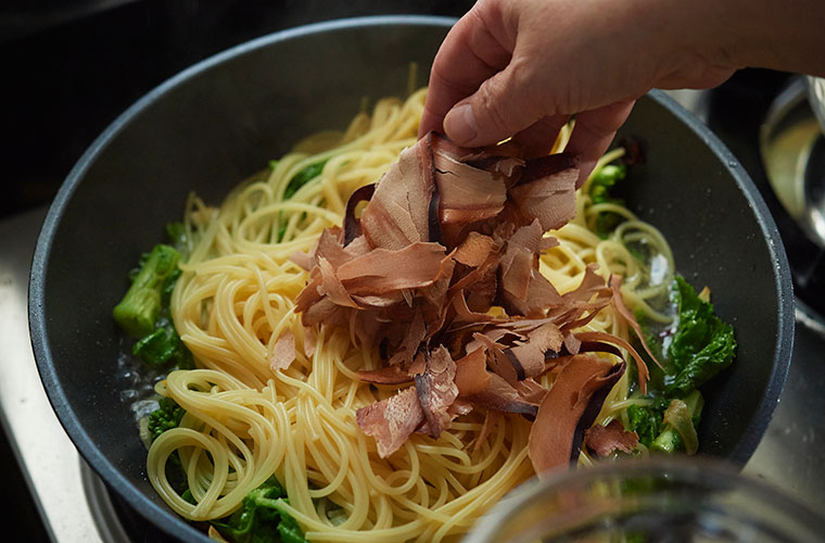 おつまみ鰹の薫香が食欲をそそる春パスタ